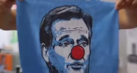 Barstool sports founder david portnoy hold up a goodell clown face towel.
