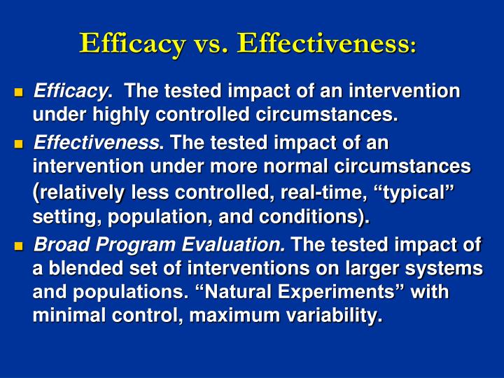 Efficacy Vs Effectiveness : Traditional Efficacy Trials Are Not Enough To Guarantee That An Intervention Will Work In The More Diverse Population Seen In The Clinic, According To Researchers Who Evaluated The.