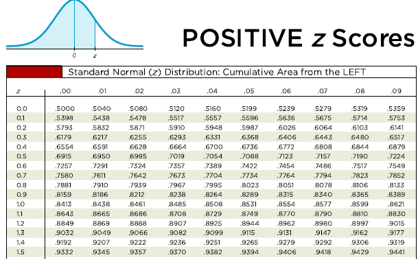 Standard normal distribution table and more.