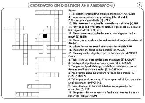 The Digestive System Crossword Answers : Biology Crossword Puzzle: The Digestive System (Includes Answer Key)